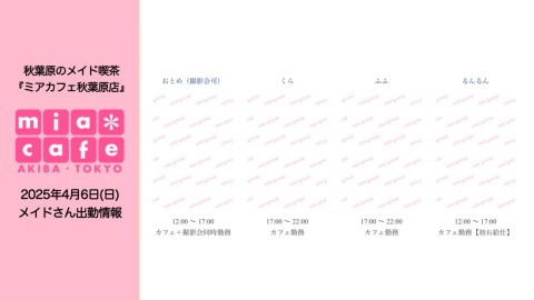本日4月6日(日)のミアカフェ秋葉原店