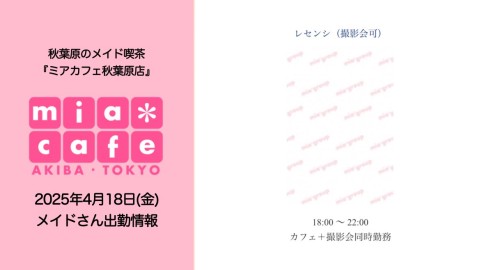 本日4月18日(金)ミアカフェ秋葉原店