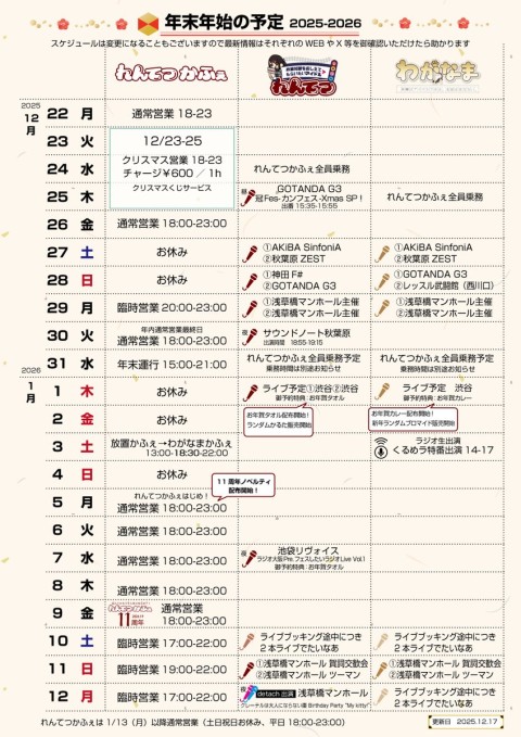 幎æ«å¹Žå§ã®ãããŠã€ïŒããµãããããªãŸãæ²èŒïŒã®ã¹ã±ãžã¥ãŒã«æ©èŠè¡šãäœããŸããã®ã§ãåèãŸã§ã«ãã²ã©ããã