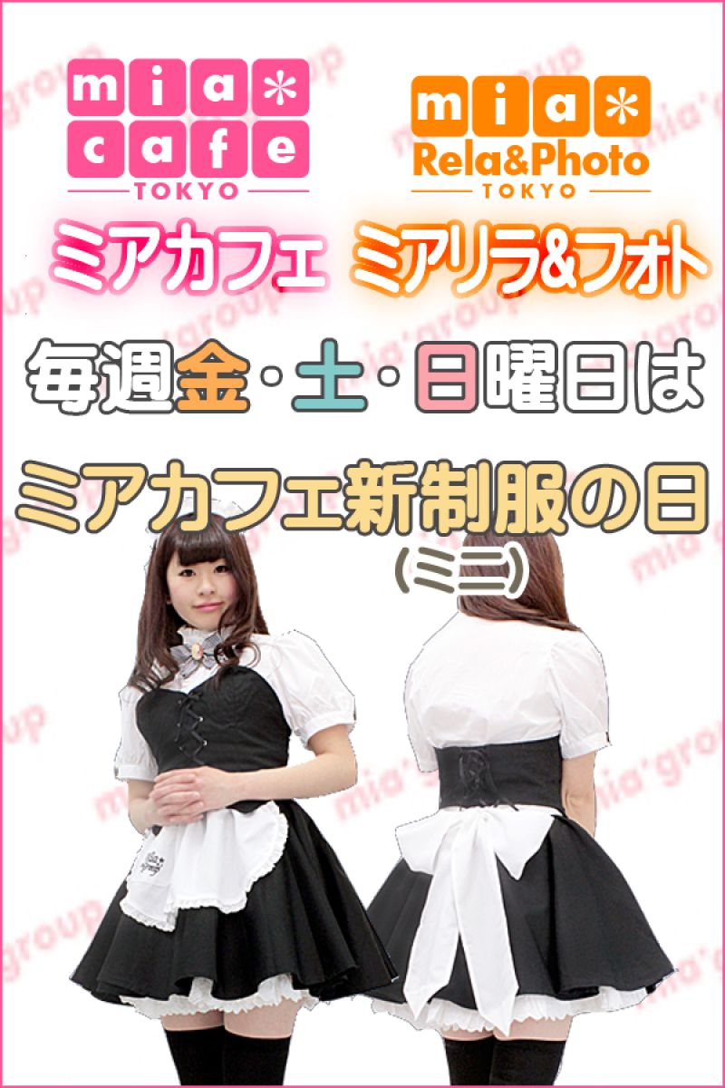 営業時間 ●ミアカフェ東京店メむドカフェhttp://www.mia-cafe.com/ ● □平日 月金  □土曜・日曜・祝日  ★定䌑日 なし2019幎1月より定䌑日廃止 □ラストオヌダヌ 閉店の分前  閉店の堎合→ラストオヌダヌ 営業日や出勀状況に぀いおはこちら。 http://pandaland.cutegirl.jp/mif/c_cms_csv/sch_top.php ●ミアリラフォト東京店撮圱䌚リフレhttp://www.mif-lr.com/ ● □党日 〜 ですがリラクれヌション出勀スタッフがいる時間垯のみ営業です。 ★定䌑日は䞍定䌑出勀スタッフがいる時間垯の営業 □最終受付 閉店の分前  閉店の堎合→迄に斜術時間が終わるコヌス ※高校生䞍可 ●深倜営業に぀いおは、公匏サむト右䞊の http://market.chu.jp/schedule1/sche37.cgi ミアグルヌプ総合スケゞュヌル・スマホ http://market.chu.jp/schedule1/sche37.cgi?dm=1 ミアグルヌプ総合スケゞュヌルガラ携垯 をご芧ください。告知日のみ営業ずなりたす。告知日以倖は深倜営業いたしおおりたせん。 深倜営業察象日 〜翌朝