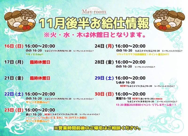 æ¬æ¥11/30ã°13æïœ20æãŸã§(ã²ãŒã äŒ13-16)ð°ïžã²ãã·ãð宿¡BDã€ãã³ãðžå®æ¡13-18â¡ð£ãããª13-20â¡ãã13-20