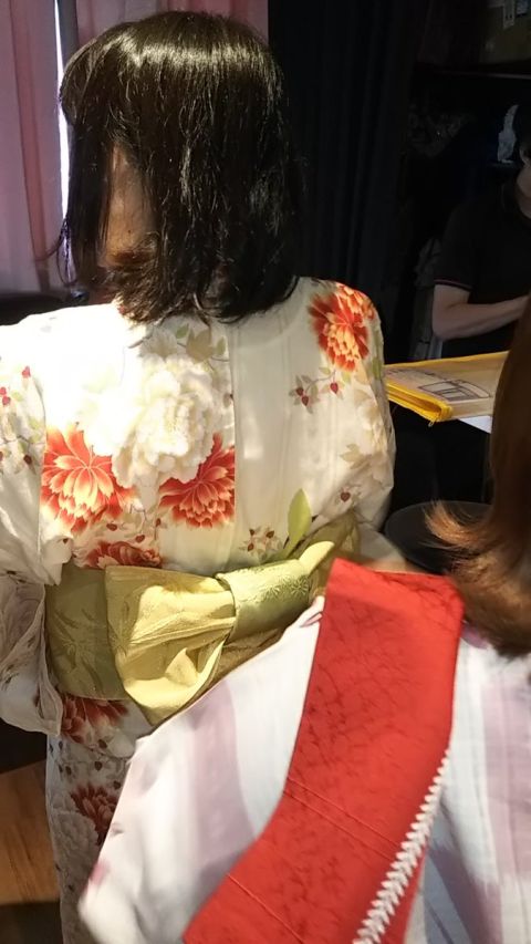 未来さん @39mikuseika の #浴衣 を直すぼたんさん @yuki_botan_