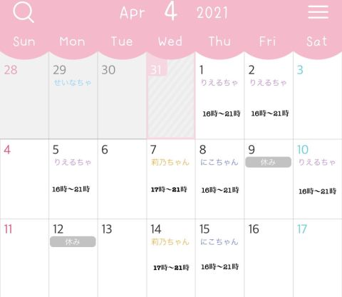 4月前半シフトです! 空白は私一人で営業します〜! https://t.co/ULGaA5Tgrf