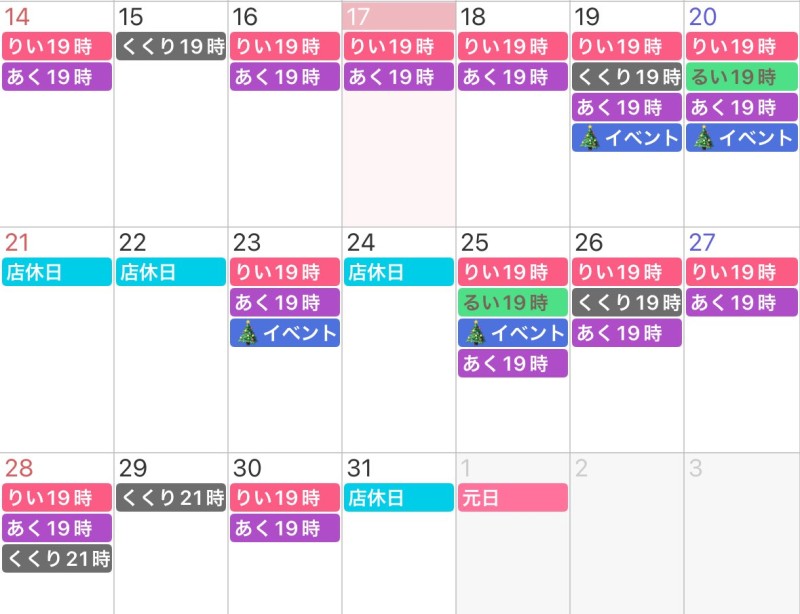 12月後半の出勤予定表です。